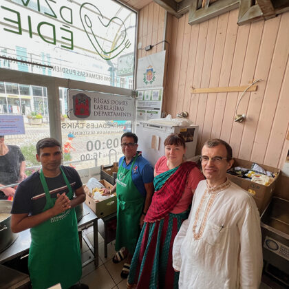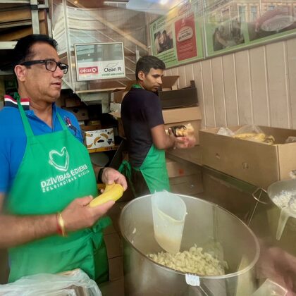 25. augusts 2022g. - Restorāna "Indian Raja" direktors Sunny Motwany izdāla kārstu ēdienu trūkumcietējiem ar augļiem viņa tēva no dzīves aiziešanas gadadienā.